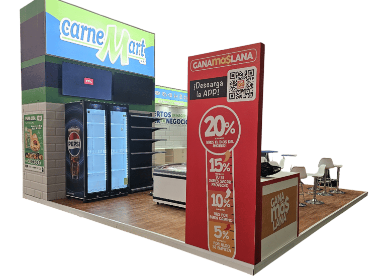 Ofrecemos stands tradicionales, prácticos y funcionales, ideales para una instalación rápida y una imagen profesional, así como stands custom, creados a la medida de tu marca, con diseños únicos que reflejan tu estilo, identidad y objetivos comerciales.